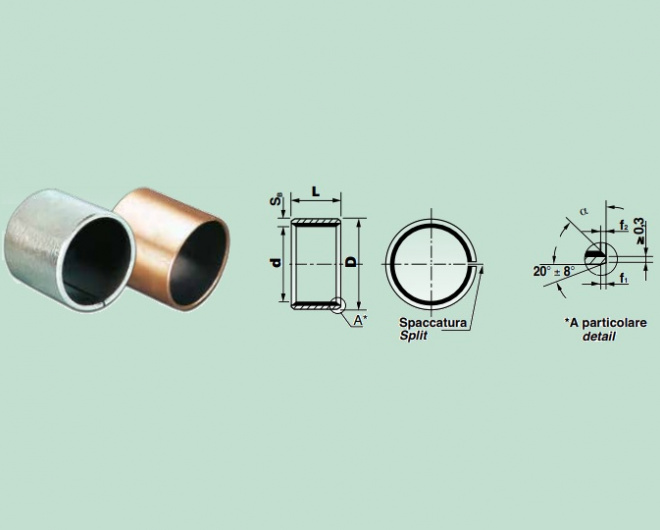 The SF-1 bushes present multiple characteristics which can be summarized as follows: • exempt from lubrication • elevated load capacities - 140 N/mm2 - on large elasto-plastic surfaces • elevated flow and low friction coefficients both static and dynamic (no stick-slip effect) • the exercising temperature is from -195 °C to +280 °C. • vibration, noise and pollution maximally reduced. The possibility to use coupling metals which have low hardness facilitating the work and reducing costs • light weight materials, compact and with minimum encumbrance • ease of mounting • oil or water are not absorbed, presenting low expansion, high conductibility and excellent thermal stability • elevated chemical resistance: easily covered with materials resistant to liquid, gas or solids which are chemically aggressive using a supplementary galvanic layer. SF-1 bushes are widely used in hydraulic vehicles, automobiles, motorcycles, agricultural machines, textile machines, printing machines, gymnastic equipment and many other applications. SF-1 bushes generally have good initial adaptability with a wear of 0,01 ~ 0,02mm. During the adjustment period a part of the surface in PTFE is deposited on the shaft or on the contact surface forming a self-lubricating film capable of reducing friction and wear. After this initial phase and with progressive increases in the functioning hours, once 80% o the PTFE is consumed, the bush is considered depleted and therefore should be replaced. The roughness of the surface must generally be inferior to 0,8 µ.