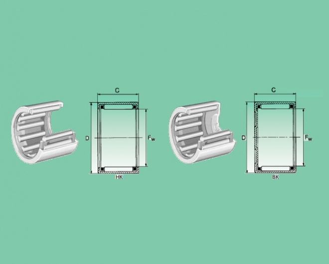 Drawn cup needle roller bearings consist of a very thin outer ring and have as a peculiar characteristic a small dimension, this enables an easy fitting up everywhere is required. HK and BK are suitable for standing heavy loads and reaching very high rotation speeds, they are forced into the housing bore and do not have to be axially fixed. Thanks to the cage, rollers are driven with maximum precision. Drawn cup needle roller bearings can be assembled without IR inner ring therefore the shaft works as a raceway, in this case the shaft must keep an hardness included between 64 HRC and 58 HRC maximum load ability is assured. Under request, HK and BK can be supplied with IR inner ring. ISB needle roller bearings can be open ends or closed end, and without lubricant, in fact they are fitted with a conservative product before assembly. BK needle roller bearings are closed at one end, they are used for shaft-end mounting. Drawn cup needle roller bearings are also available with seals: this protects them from external factors and let them have an higher lubricating power (temperature has to be included within -30°C and +80°C).