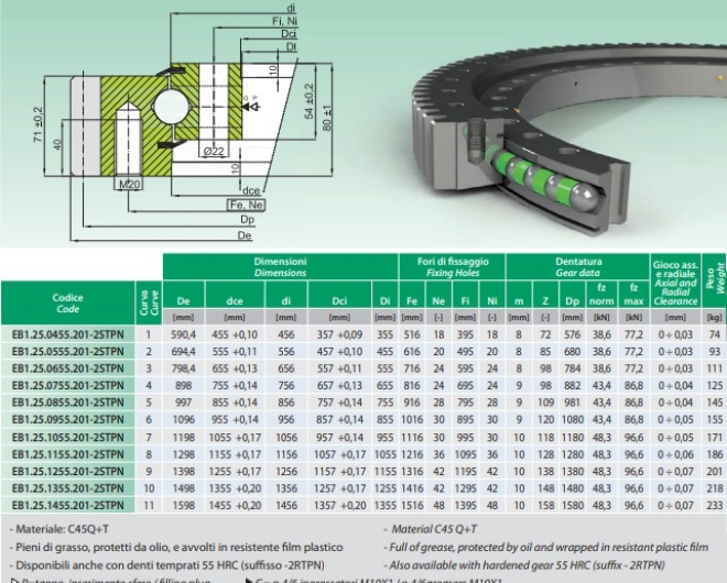 ISB slewing bearings in the EB1 standard series are supplied pre-greased.