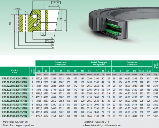 ISB slewing bearings in the ER3 standard series are the only solution when the static load or fatigue cycle values of the bearing
