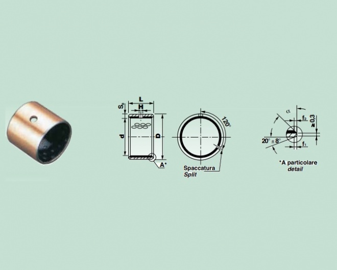 Struttura SF-2 Sullo strato in acciaio viene sinterizzato lo strato poroso in bronzo, avente quale funzione il collegamento e la dispersione termica dello strato di strisciamento in resina poliacetalica che presenta degli alveoli per raccogliere e rilasciare gradualmente il lubrificante, in modo tale da ridurre l’attrito e proteggere la superficie di scorrimento della boccola. Per facilitare la rilubrificazione le boccole SF-2 sono fornite di apposito foro esterno. È consigliabile l’utilizzo di un grasso al sapone di litio: l’MoS2 ed i grassi a base di grafite non sono idonei. Le boccole SF-2 vengono impiegate in molteplici settori, tra i quali troviamo: industria mineraria e metallurgica, presse per lo stampaggio, macchine idroelettriche e per la laminazione a freddo dell’acciaio; generalmente applicazioni con lubrificazioni periodiche. L’utilizzo di questo tipo di boccole è in forte crescita proprio perché grazie alle principali caratteristiche, di seguito elencate, favorisce l’eliminazione di diversi problemi: • scarsa manutenzione, dovuta ai larghi intervalli di rilubrificazione • buona adattabilità ai movimenti oscillanti e rotativi • usura limitata (se applicate ed utilizzate correttamente) • idrorepellenti • ridotta sensibilità al carico sugli spigoli • buona dispersione del calore.