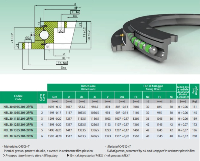 Ralla flangiata ad un giro di sfere, senza dentatura NBL.30.1455.201-2PPN ISB ( Serie di precisione )