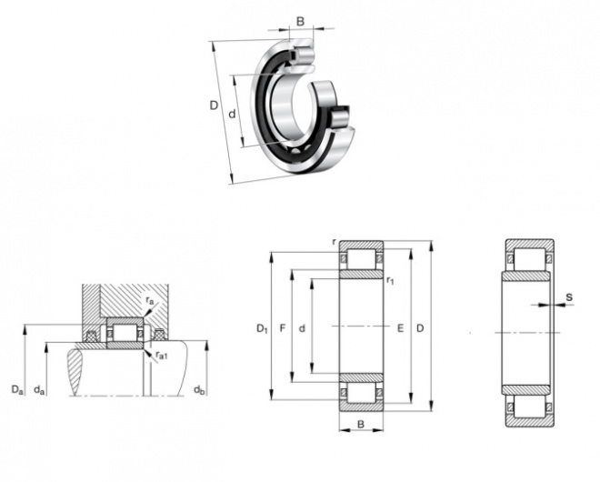 I cuscinetti radiali a rulli cilindrici ad una corona con gabbia sono unità composte da anelli esterni ed interni massicci e da corone di rulli cilindrici. Gli anelli esterni sono eseguiti con bordi fissi su entrambi i lati oppure senza bordi, gli anelli interni hanno uno o due bordi fissi oppure sono senza bordi. La gabbia impedisce che i rulli cilindrici durante il rotolamento si tocchino reciprocamente. I cuscinetti a rulli cilindrici possono essere forniti con o senza gabbia.
