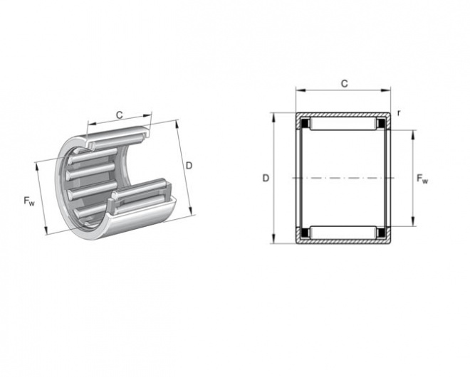 Gli astucci a rullini sono aperti su ambo i lati e vengono forniti con gabbie a rullini o a pieno riempimento di rullini. I cuscinetti con gabbie a rullini consentono velocità di rotazione più elevate rispetto alle esecuzioni a pieno riempimento di rullini. Astucci a rullini a pieno riempimento di rullini Grazie al numero massimo di rullini, gli astucci a rullini a pieno riempimento consentono capacità di carico massime con ingombri ridottissimi. Il loro utilizzo a velocità di rotazione elevate è però limitato. Poiché i rullini non hanno trattenimento meccanico, vengono assicurati per il trasporto e il montaggio con un grasso speciale (DIN 51825–K1/2K–30). L’azione lubrificante di tale grasso nel tempo non è però sufficiente. Per questo motivo consigliamo una rilubrificazione dopo il montaggio.