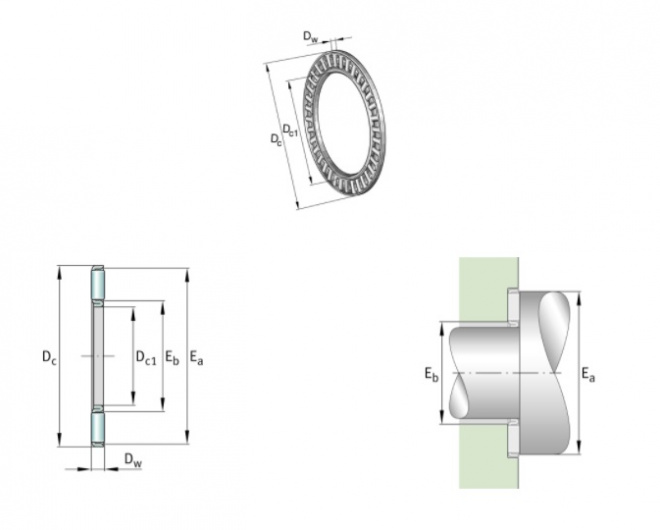 Le disposizioni di cuscinetti con rullini assiali e gabbie hanno un'elevata capacità di carico assiale, sono estremamente rigide e possono supportare forze assiali in una direzione. Le disposizioni di cuscinetti con rullini assiali e gabbie sono particolarmente adatte dove: - forze assiali elevate si verificano in una direzione e non sono presenti carichi radiali - la capacità di carico di cuscinetti radiali a sfere assiali comparabili non è più sufficiente e l'elevata capacità di carico assiale dei cuscinetti assiali a rulli cilindrici non è ancora necessaria. - lo spazio assiale disponibile è solo estremamente ridotto. le parti del cuscinetto possono o devono essere montate separatamente. Gruppi assiali a rullini e gabbia con ralle per cuscinetti assiali I gruppi assiali a rullini e gabbie AXK comprendono gabbie in plastica o metallo geometricamente stabili dotate di un gran numero di rullini. Per altezze della sezione assiale particolarmente ridotte, i gruppi assiali di rullini e gabbia possono essere integrati direttamente nella costruzione adiacente. Le superfici di scorrimento dei corpi volventi devono quindi essere realizzate come piste dei cuscinetti volventi. I gruppi assiali a rullini e gabbia sono generalmente combinati con ralle per cuscinetti assiali. Ciò è appropriato se, ad esempio, si verificano velocità elevate e le ralle dei cuscinetti devono quindi essere centrate con precisione o le superfici di scorrimento per i corpi volventi non possono essere configurate come piste per cuscinetti volventi.