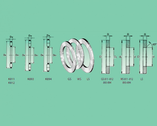 Le gabbie assiali a rulli cilindrici K hanno una struttura più robusta e possono essere costruite con materiale plastico, in leghe leggere ed ottone. Le gabbie assiali a rulli cilindrici possono accoppiarsi con ralle per alloggiamento di tipo GS e con ralle per albero di tipo WS. Le gabbie assiali a rulli cilindrici appartenenti alla serie K 811 possono accoppiarsi anche con ralle di tipo AS, LS e ZS.