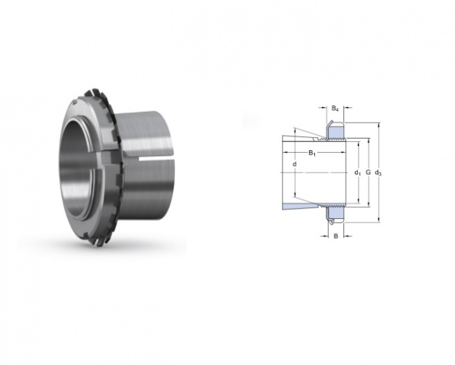 Le bussole di pressione si utilizzano per montare cuscinetti con foro conico su sedi cilindriche di alberi a gradini. La bussola viene spinta nel foro dell'anello interno del cuscinetto appoggiato contro uno spallamento dell'albero o un componente fisso simile. La bussola viene vincolata sull’albero da una ghiera oppure da una piastra d'estremità. Le ghiere della serie KM o HM (Ghiere di bloccaggio che richiedono una sede per chiavetta) con relativo dispositivo di bloccaggio sono idonee. Queste ghiere di bloccaggio non sono fornite con le bussole e e devono essere ordinate separatamente. Le piastre di estremità non sono prodotte da SKF.