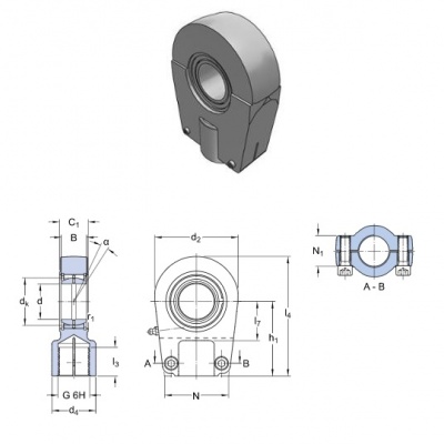 I terminali con superficie di strisciamento in acciaio-bronzo sinterizzato composito o acciaio-tessuto PTFE incorporano uno snodo della gamma standard. L'anello esterno viene fissato in posizione nell'alloggiamento.