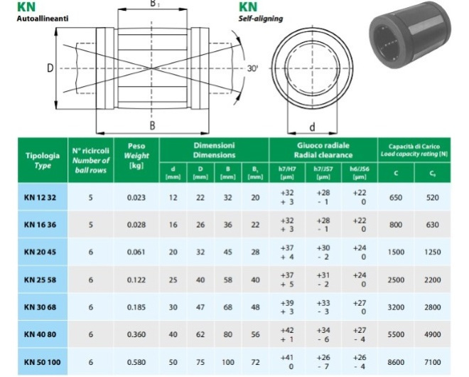 Cuscinetti per la movimentazione lineare KN 25 58 ISB