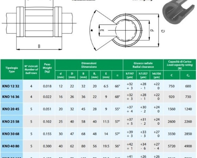 Cuscinetti per la movimentazione lineare KNO 16 36 ISB