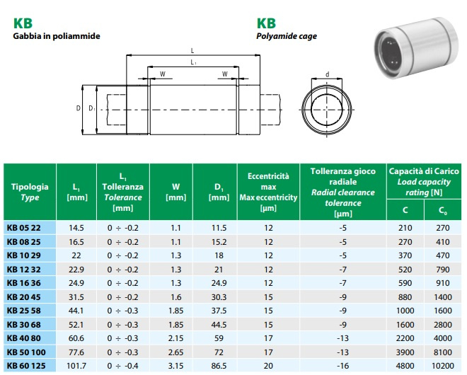 Cuscinetti per movimentazione lineare KBS 10 29 ISB