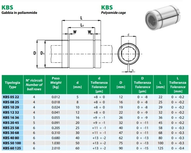 Cuscinetti per movimentazione lineare KBS 25 58 ISB