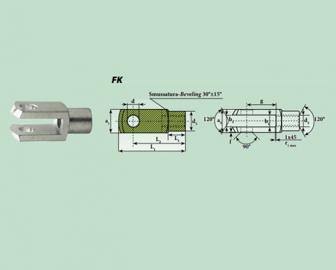 Le forcelle, sono componenti meccanici di collegamento, adatti per la trasmissione di forze statiche; corrispondenti alla DIN 71752, successivamente specificate nelle tabelle dimensionali, possono essere identificate dal filetto con relativo passo. Ad ogni tipologia di forcella corrisponde il relativo perno, con eventuale copiglia o in alternativa il fermaglio con molla denominata clips, accessori che hanno il compito di collegare la forcella alla parte meccanica, per la trasmissione della forza. Gli articoli sopra riportati sono normalmente costruiti in acciaio, ma su richiesta possono essere forniti anche in alluminio o in alternativa in acciaio inox (AISI 304).